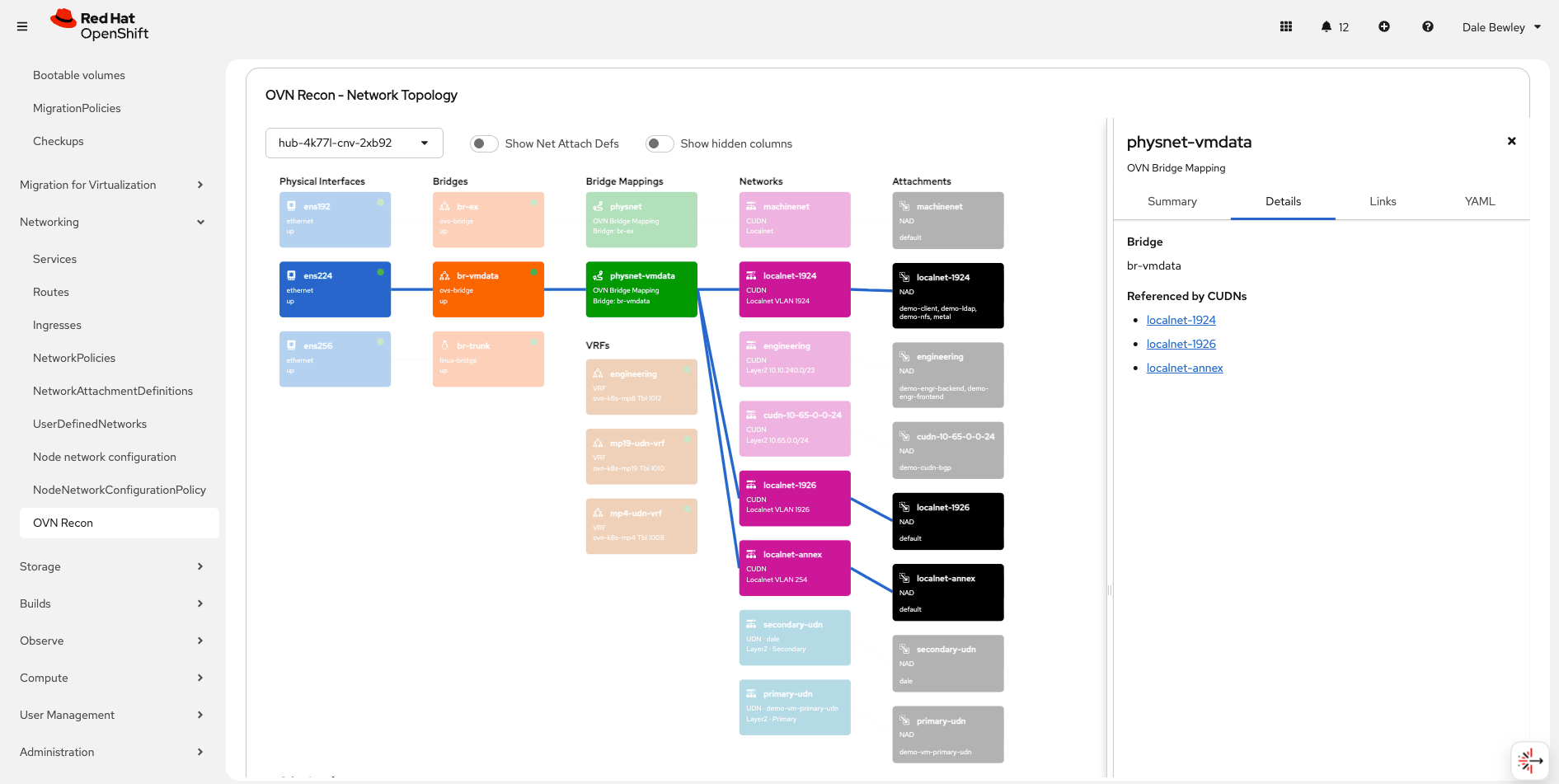 OVN Recon is experimental. I created it to help me help others understand how CUDNs change the networking in OpenShift. I vibe coded it in programming languages I don’t know well. I used a number of different IDE and agentic tools including Antigravity, Beads, Codex, and Cursor. You should keep all that in mind.